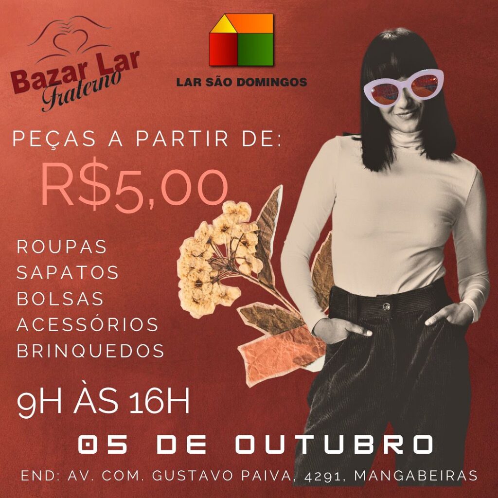 O bazar funcionará das 9h às 16h e fica situado dentro do Lar São Domingos, na Av. Gustavo Paiva, 4291, Mangabeiras.